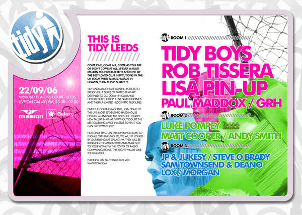 I can’t wait! I have not played Leeds for so long that I have got withdrawal symptoms. I have so many people emailing me through my web site www.lisapin-up.comasking me when am I going to be playing back up that way as they have not heard me for a while, and to be djing for Tidy and along side such amazing djs, the night is going to be huge!